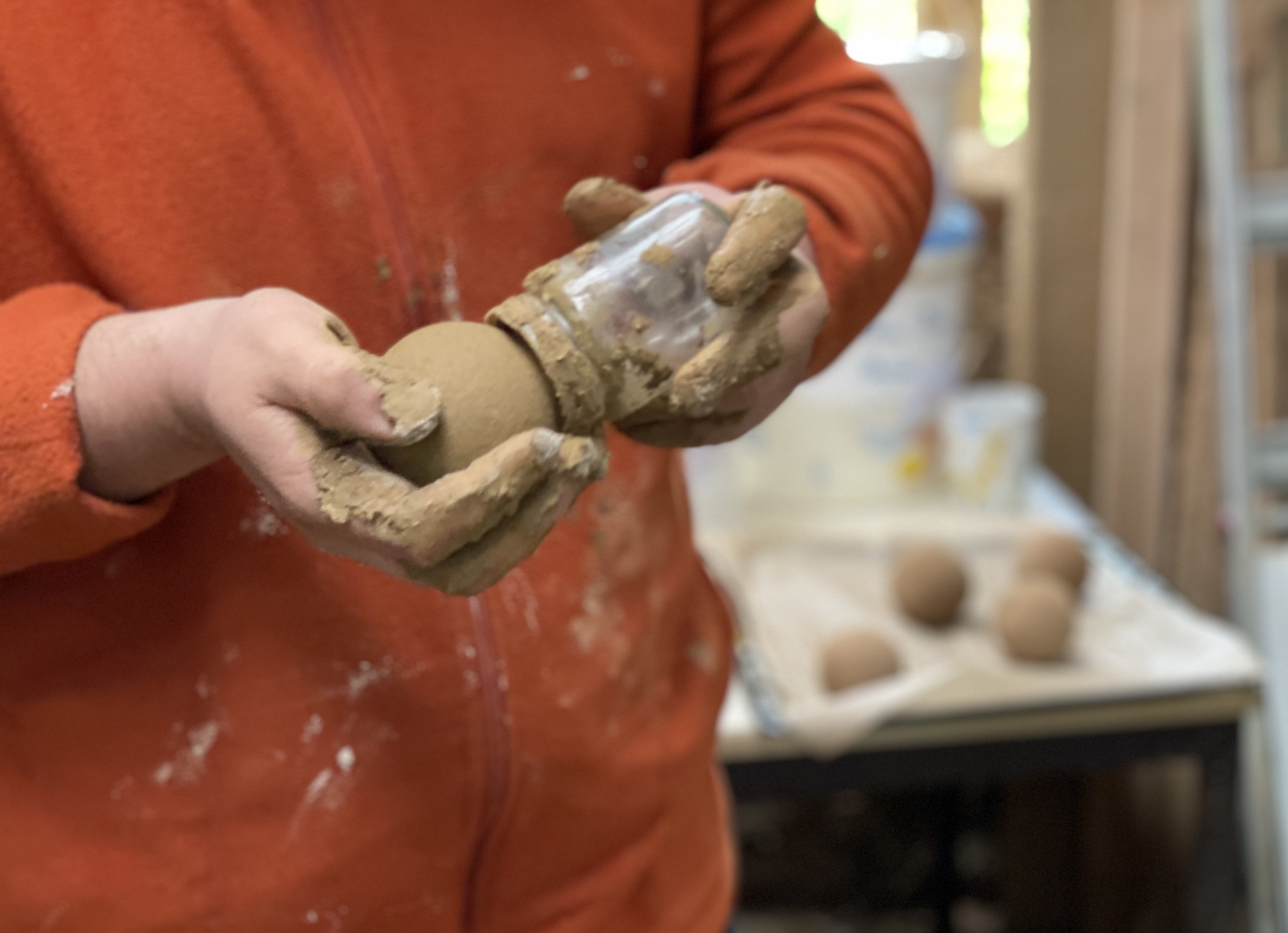 Ein weiteres Highlight: Die am Vortag begonnenen Dorodango 泥団子 – polierte "Lehm-Klöße" nach japanischem Vorbild – werden fertiggestellt. Nach dem Trocknen folgt heute der zweite Schritt: Durch vorsichtiges Verdichten und Glätten entsteht eine harte, glänzende Oberfläche. Beim behutsamen Drehen und Polieren entstehen lange, meditative Momente – Konzentration, Rhythmus, Stille.